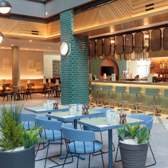 The 4* Holiday Inn London – Heathrow Bath Road is conveniently located within easy access to historic Windsor and Kew Gardens. No expense has been spared on this modern hotel with its open plan atrium that takes inspiration from an Italian streetscape. On the ground floor is the 'theatre kitchen', the main focal point of the hotel. The spacious, contemporary rooms, with floor to ceiling windows have Free WiFi, TV, hairdryer and Tea/Coffee making facilities.