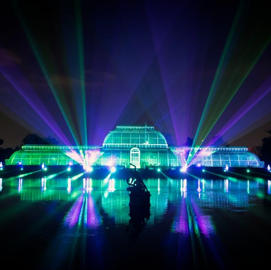 A 1½ mile Winter Walking Trail of Christmas illuminated lights within the gardens, trees, temples and glasshouses at Kew Gardens.