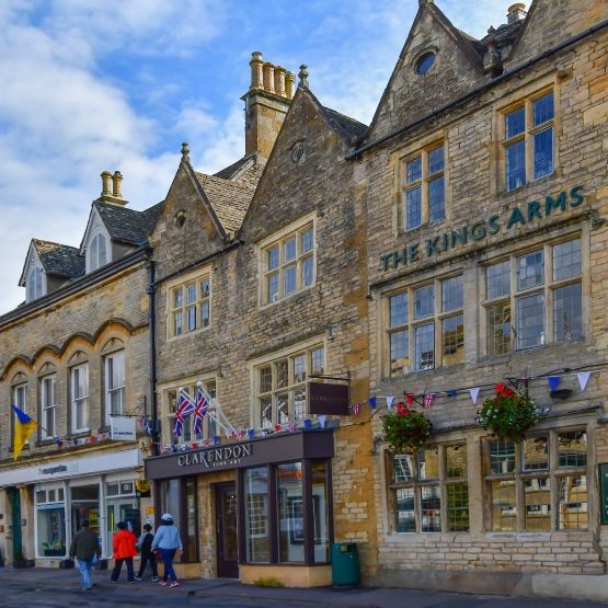 Stow on the Wold, surrounded by town houses, independent shops, antique centres and cafes. Built in mellow local stone with medieval market stocks at one end, a ancient market cross at the other and St Edwards Hall standing in the centre. Rodmarton Manor is a unique Arts and Crafts Manor House containing furniture, with a early 20th-century garden. Designed for the Biddulph family by Ernest Barnsley, and brother Sidney who was principle furniture maker. Building work started in 1909, completed in 1929. The outbreak of WW1 delayed the build.